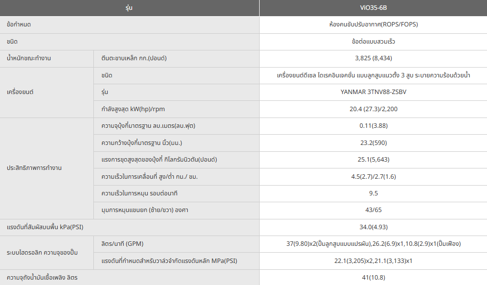 รถขุดยันม่าร์ ViO35-6B ขนาด 3.6 ตันและ 3.8 ตัน รถขุดที่ได้รับความนิยมสูงสุดในตระกูล ViO Series ทลายทุกขีดจำกัดในการก่อสร้างตอบโจทย์การทำงานได้หลากหลายมีให้เลือกทั้งแบบห้องควบคุมแบบปรับอากาศและห้องควบคุมแบบเปิดโล่ง เหมาะที่สุดสำหรับงานที่ต้องอาศัยความคล่องตัวสูง หรือพื้นที่รถขุดขนาดใหญ่ไม่สามารถเข้าถึงได้ เช่น งานฐานราก งานเจาะทำลาย งานปรับพื้นที่ งานระบบประปา งานระบบชลประทาน เป็นต้น