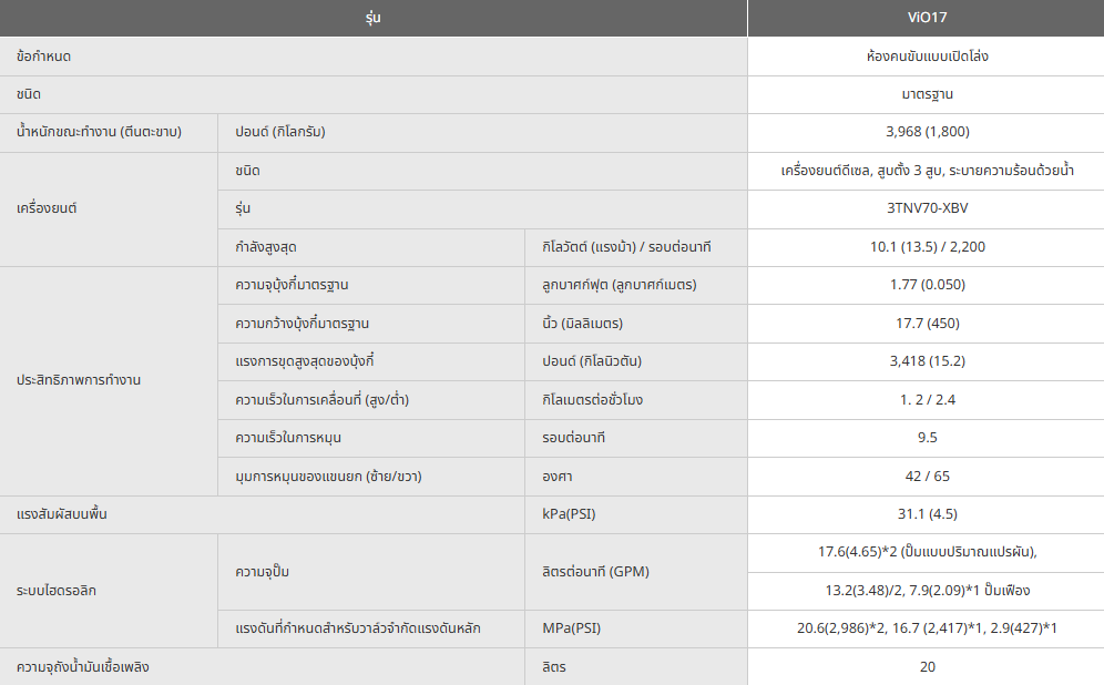 รถขุดยันม่าร์รุ่น ViO17-1 (รุ่น 1.8 ตัน)