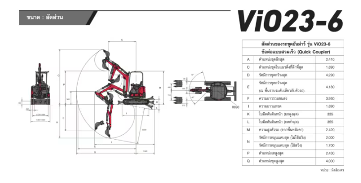 รถขุดยันม่าร์รุ่น ViO23-6 (รุ่น 1.8 ตัน)